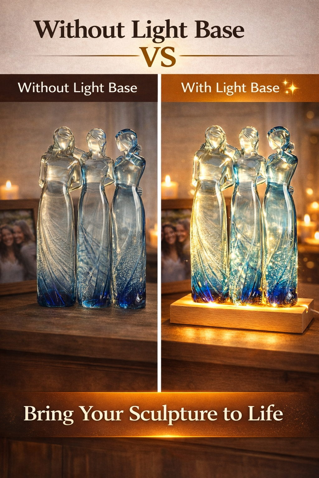 Add a warm LED light base to instantly transform your sculpture into a glowing centerpiece.