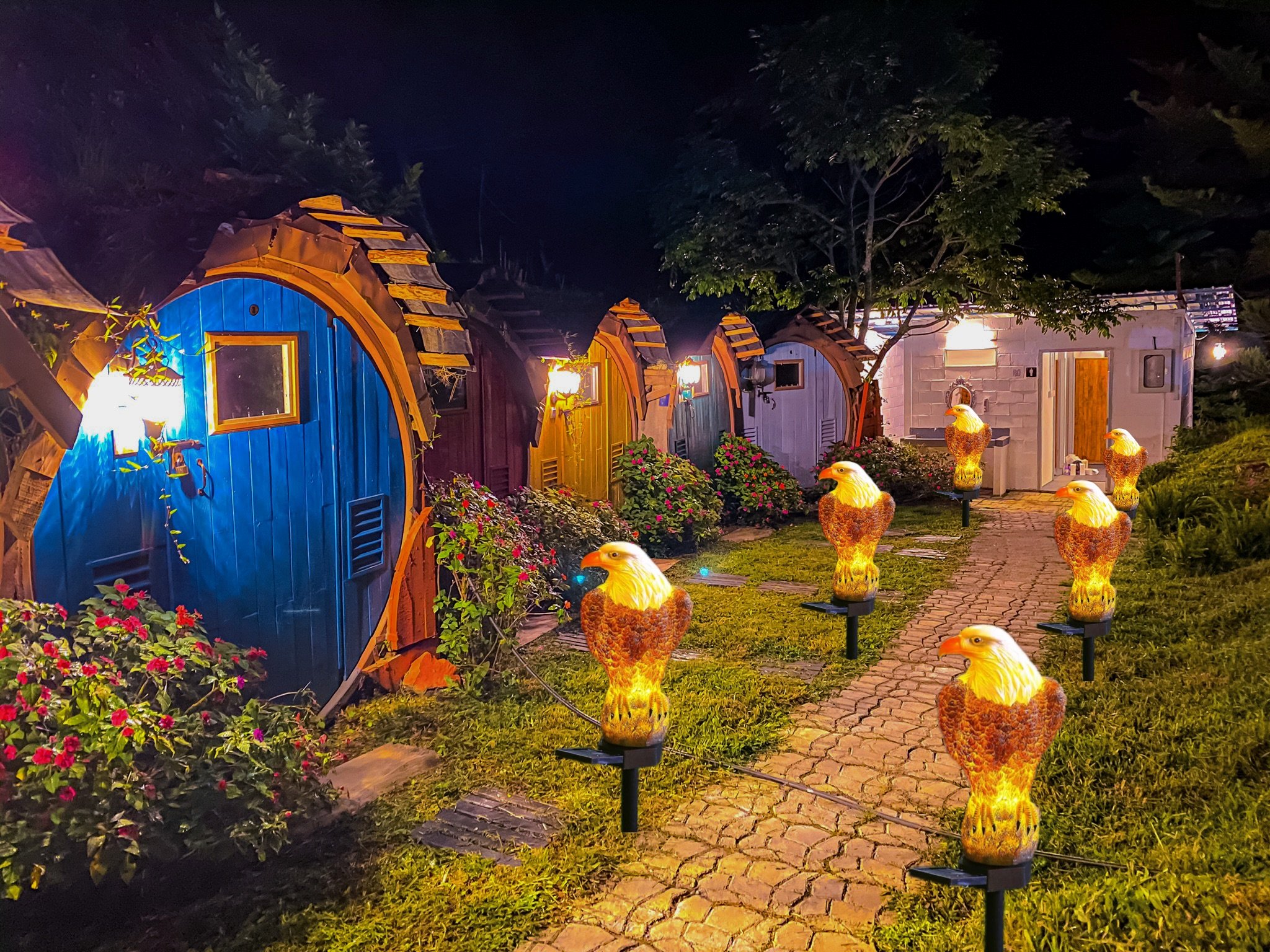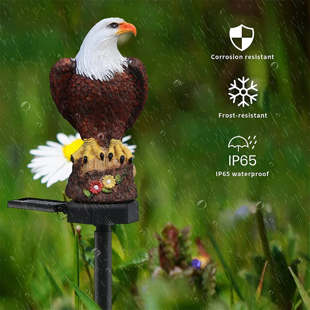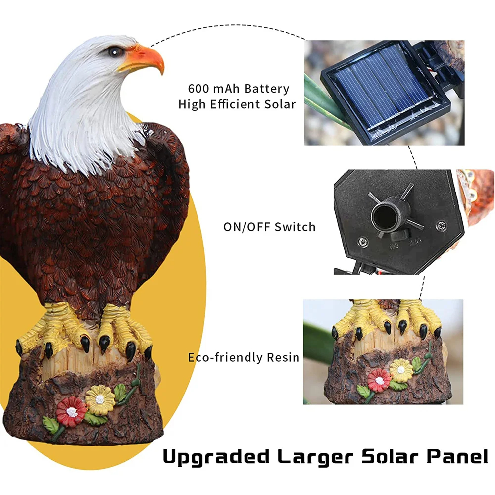 The solar panel charges during the day, and the lights automatically turn on at dusk . No wiring is required to place them in a sunny spot .Detail eagle handicraft sculpture,in the daytime it as a garden statue decoration and in night time it will light up from inside body.