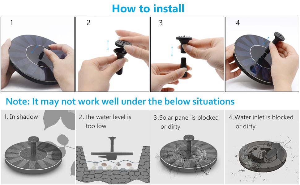 Package includes:Solar outdoor fountain*1 Nozzles*5