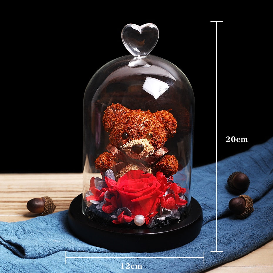 Material: Glass, Wood, Rose, Ornaments, LEDsRose: Eternal Natural Rose